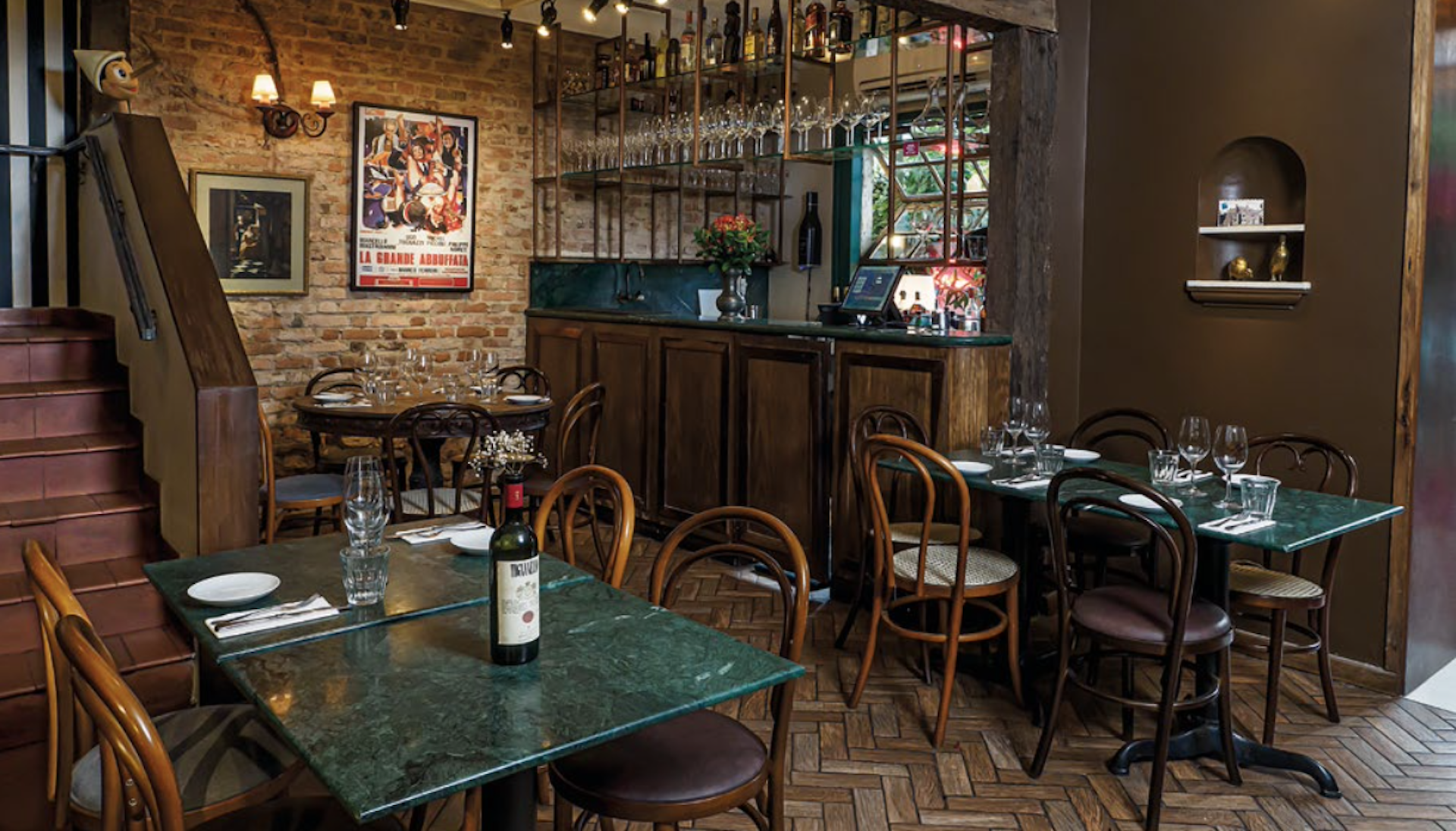 No italiano Babbo Osteria, em Ipanema, o chef Elia Schramm combina o resgate culinário ao arquitetônico. Pratos inspirados em receitas de família (babbo é um jeito carinhoso de dizer “pai”) são servidos num ambiente aconchegante, que, de tão caprichado, foi parar na lista de restaurantes mais bonitos do mundo em 2022, segundo a premiação Prix Versailles. Responsáveis pela reforma da casa, as arquitetas Michelle Jagger e Natalia Schmidt, do escritório MZNO Arquitetura, contam que o sobrado estava descaracterizado por intervenções anteriores e o principal preceito do projeto foi recuperar as feições originais. “Tiramos acréscimos desnecessários e restauramos elementos importantes, como a escada e o piso de tábuas do andar de cima”, diz.
