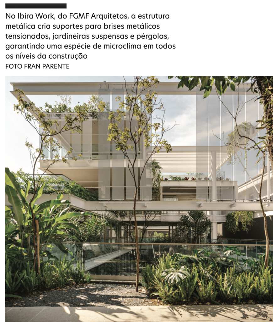 “A sustentabilidade tem que estar no primeiro rabisco do projeto. Há muitos traços da arquitetura brasileira – como elementos vazados, cobogós e beirais – que possibilitam o conforto térmico, por exemplo. É preciso enxergar o todo, buscando soluções mais ecológicas, eficientes e agradáveis”, afirma Fernando Forte, sócio do FGMF Arquitetos, que assina o Ibira Work. O edifício de escritórios próximo ao Parque do Ibirapuera, em São Paulo, não economiza em varandas – elas são generosas e estão em todos os níveis – nem em escadas descobertas que colocam os usuários em contato frequente com o verde e não apenas quando estão no rooftop. Focado no bem-estar, o projeto beneficia os ocupantes com espaços ambientalmente agradáveis e eficiência energética, qualidades obtidas em função de vários estudos preliminares. Um dos primeiros, claro, foi o que orientou a correta implantação do prédio no terreno e garantiu insolação adequada, ventilação cruzada, aproveitamento ideal da área disponível e a presença marcante do paisagismo.